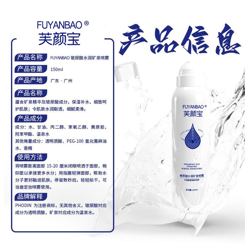 芙颜宝玻尿酸补水喷雾批发修护舒缓控油清爽爽肤水女保湿定妆喷雾