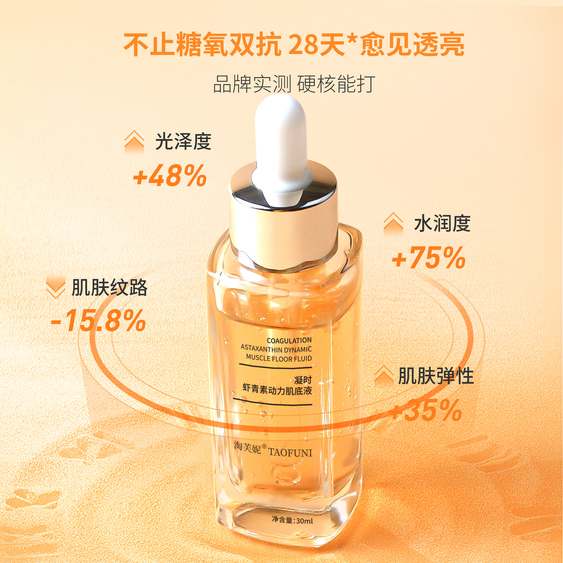 虾青素精华液30ml 烟酰胺+肌肽青春定格液糖氧双抑熬夜小橘瓶精华
